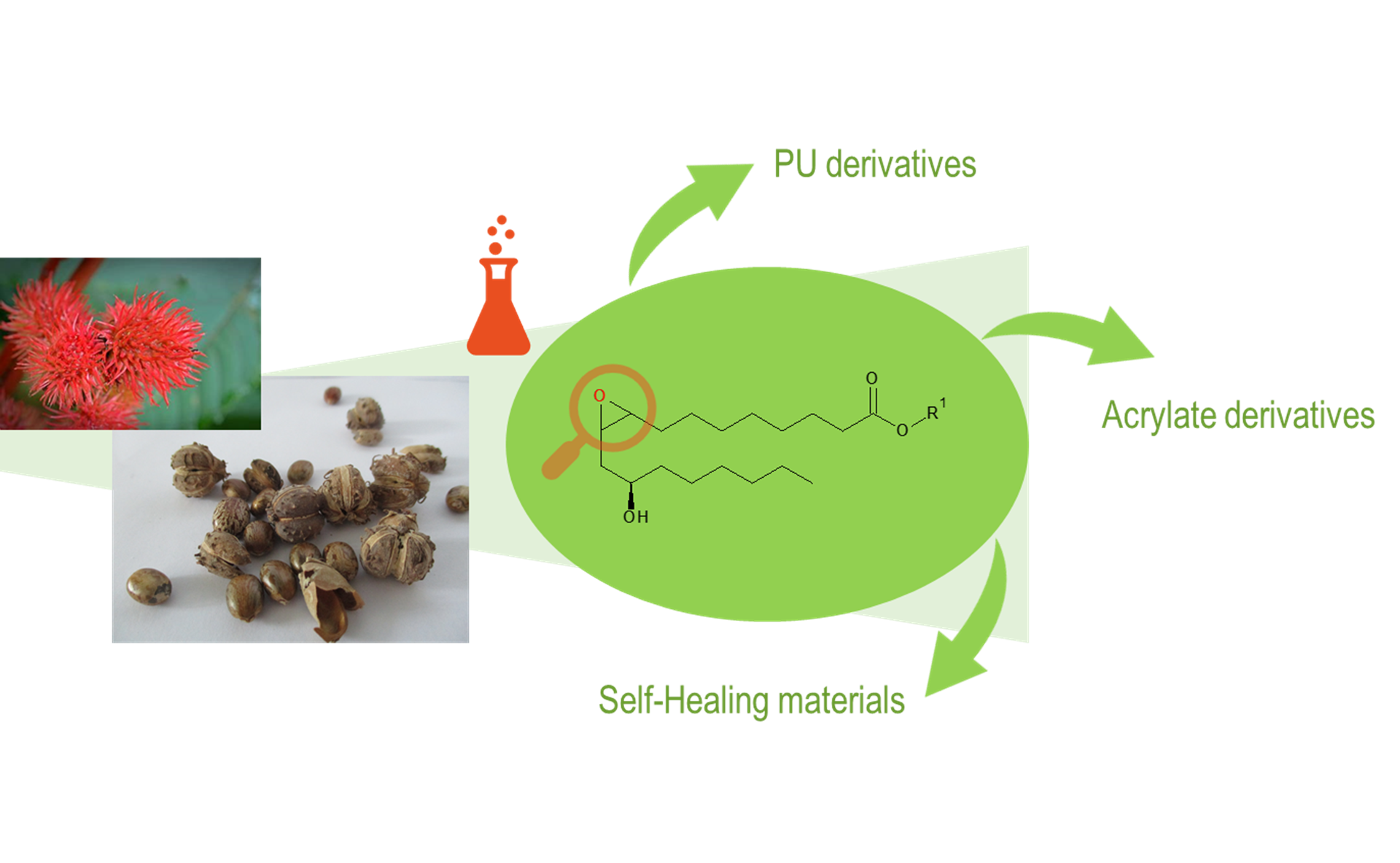 En apportant de nouvelles fonctionnalités à un précurseur époxydé de l’acide ricinoléique, faisant office de molécule plateforme grâce à la fonction oxirane, la collaboration d’ITERG et du LCPO vise à développer de nouvelles applications pour ces oligomères d’acide ricinoléique, sur des marchés tels que les revêtements de surface, les adhésifs, les additifs et les matériaux auto-réparants.